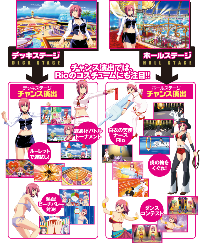 チャンス演出に登場するRioの七変化は要チェック!