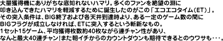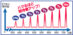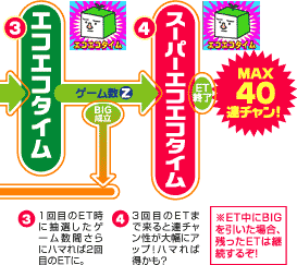 このゲーム数は1/8の確率で均等に抽選されているので、ハマるほどET突入の期待値はアップする!