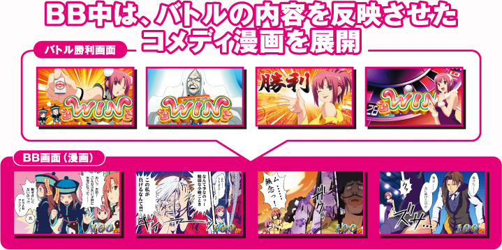 BB中は、バトルの内容を反映させたコメディ漫画を展開